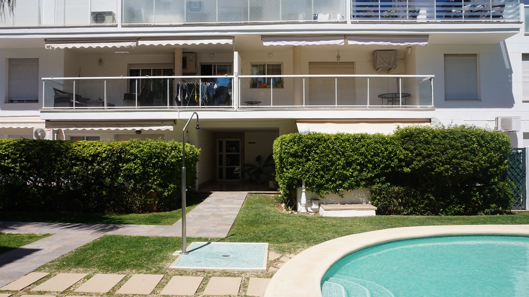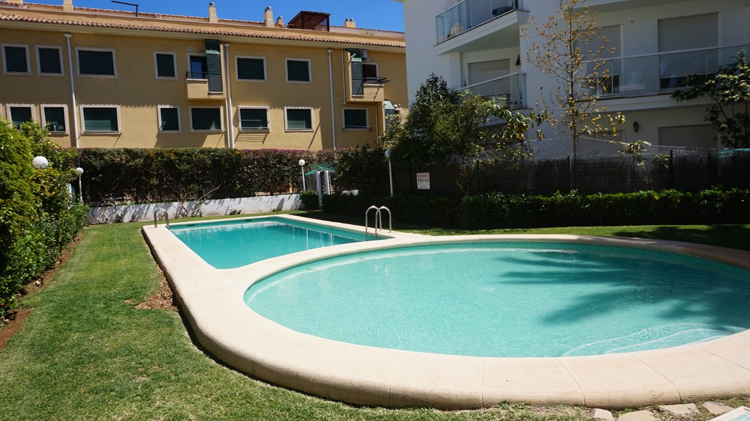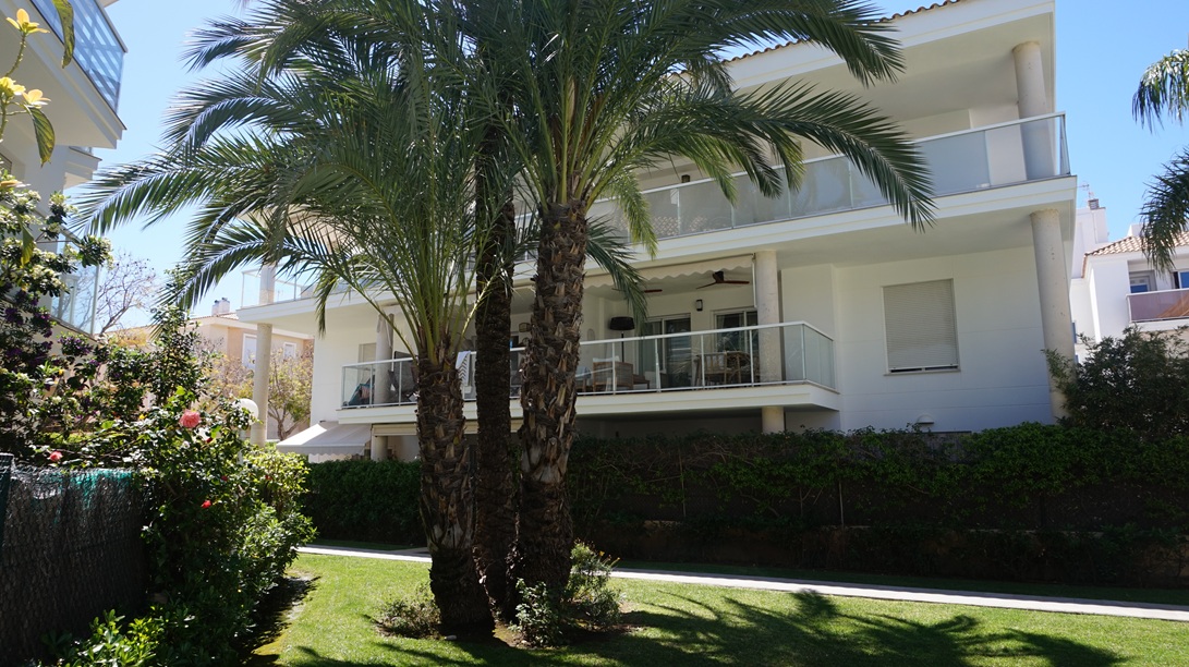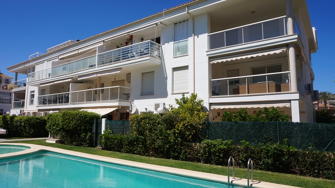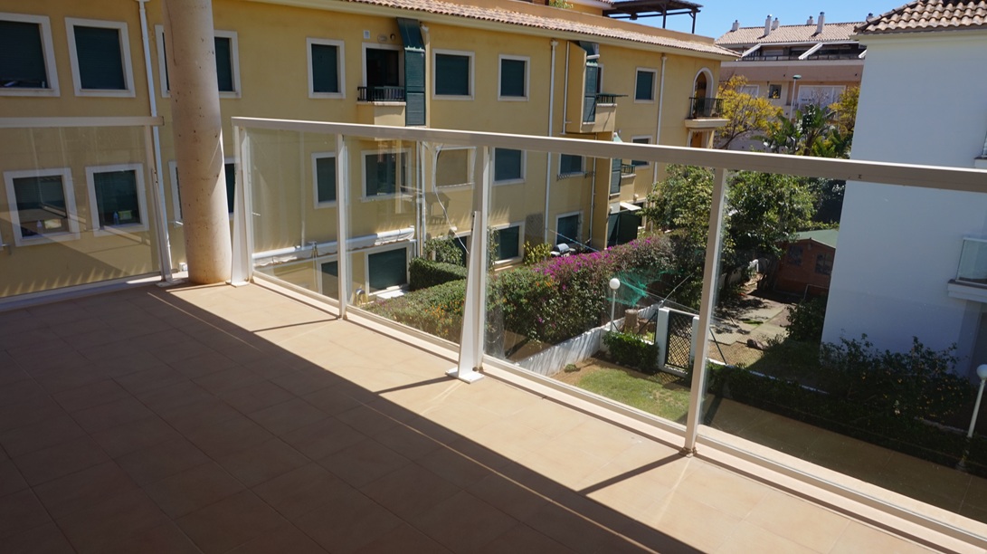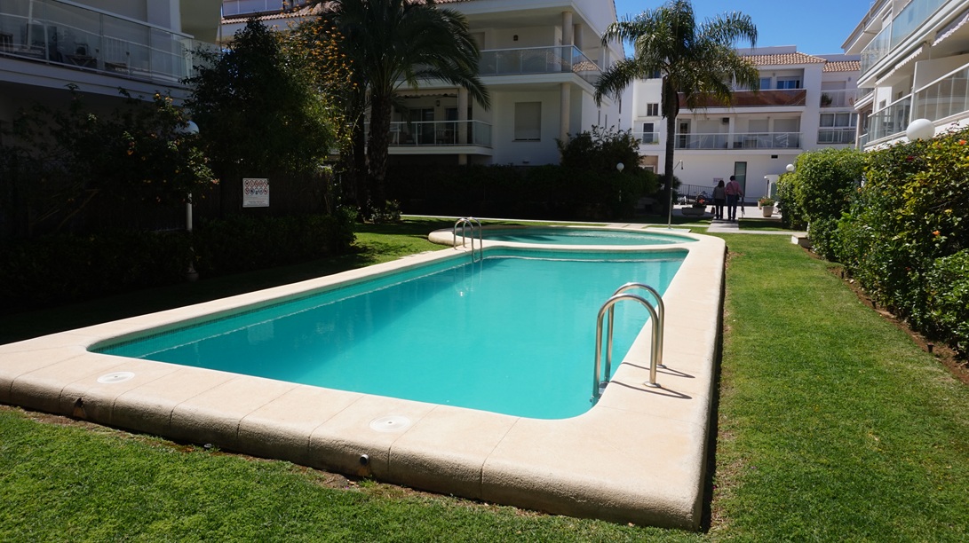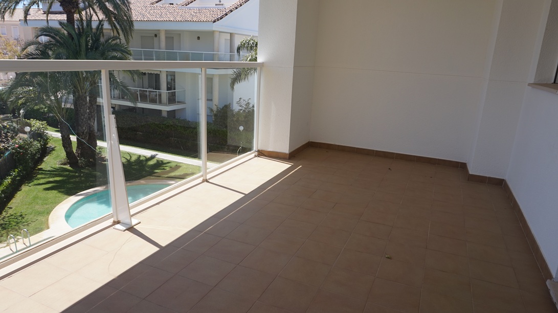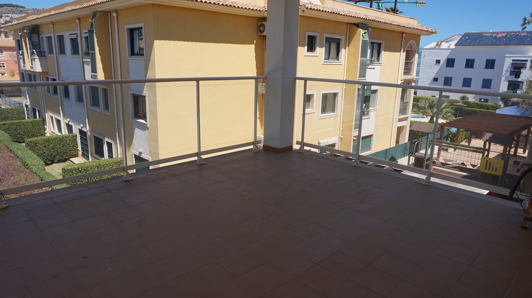 Apartamento en alquiler de larga temporada en Jávea, En Avda Augusta y muy cercano al puerto de Jávea, en segunda planta con ascensor ,  y orientación Sur ,113 m2 distribuidos en Hall de Entrada, amplio y luminoso  Salón/Comedor con acceso a dos grandes Terrazas, una con orientación norte con vistas al Montgó y otra orientación Sur con vistas a las zonas comunes de jardín y piscina, Cocina completamente equipada con acceso Terraza ,un Dormitorio principal con. Baño en suite , dos Dormitorios y un Baño