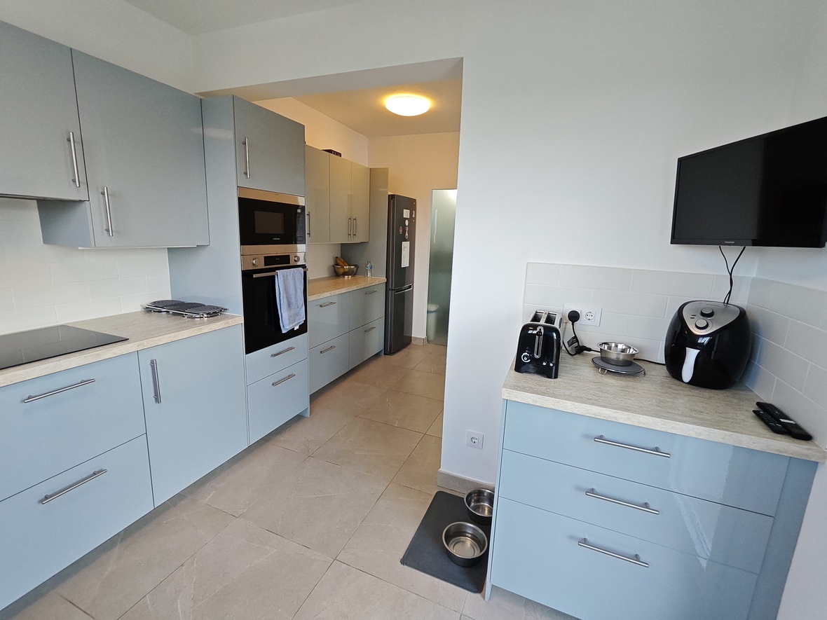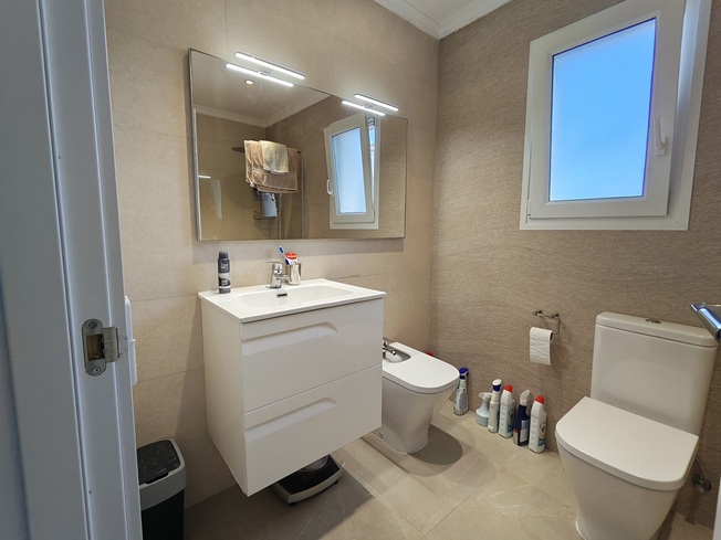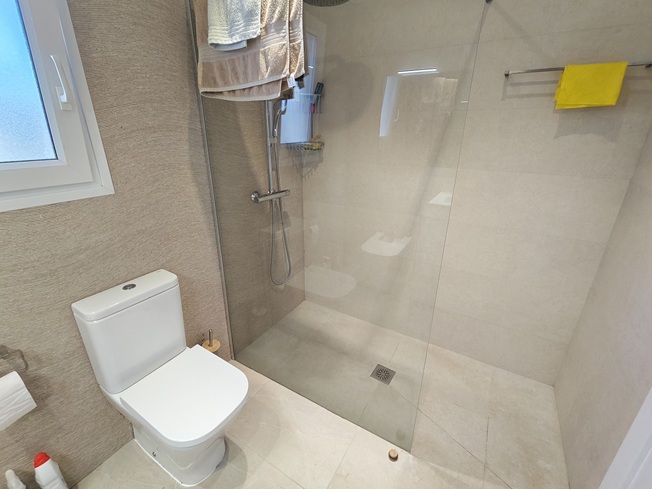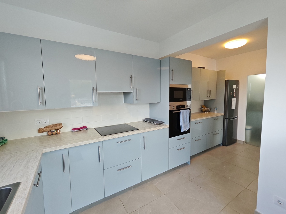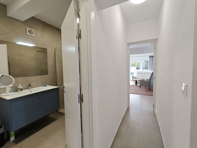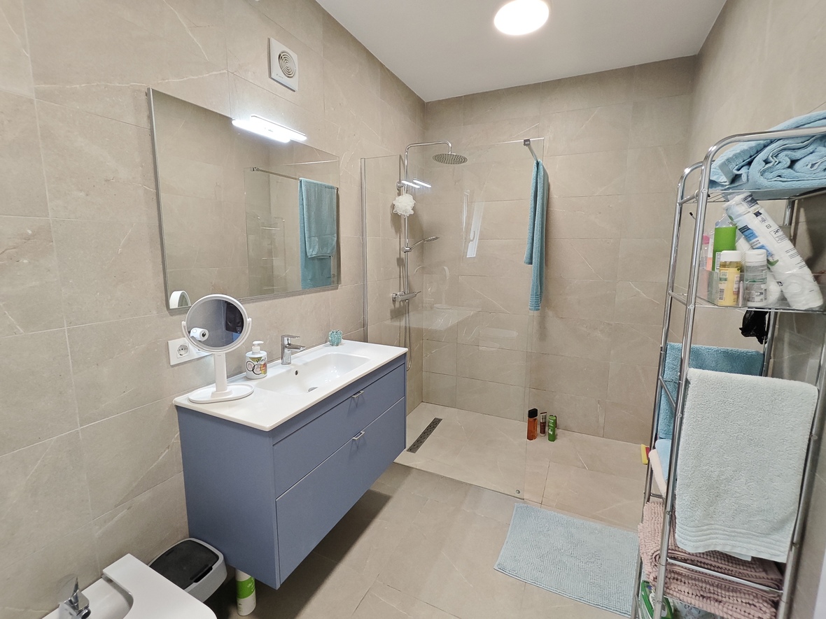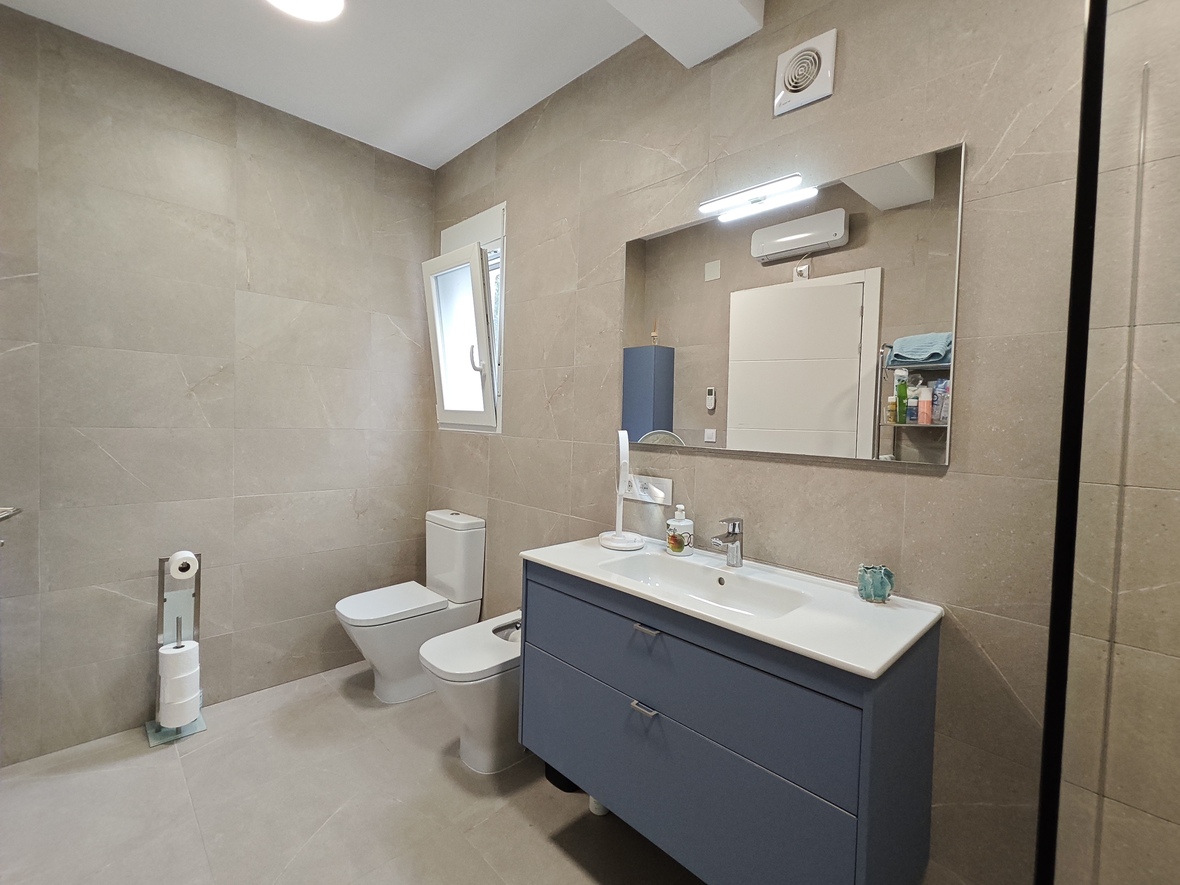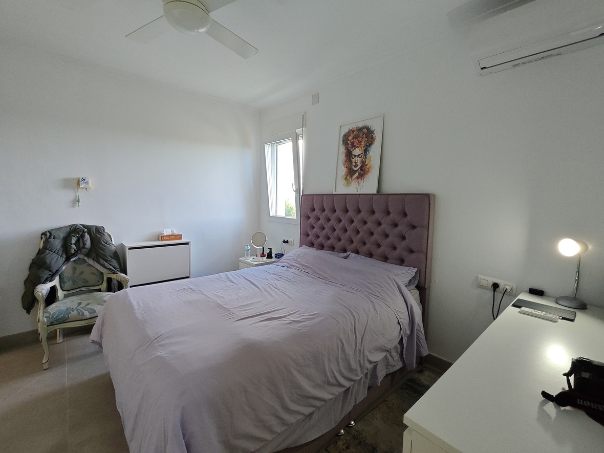 El interior destaca por su gran luminosidad y una sensación de amplitud única, especialmente en el salón-comedor, que impresiona por sus techos de altura sobredimensionada. La zona de noche ofrece tres dormitorios dobles con armarios empotrados y dos baños completos de generosas dimensiones, incluyendo una suite principal. La cocina, moderna y totalmente equipada, cuenta con un práctico lavadero independiente y se conecta con el comedor y la gran naya frontal, una terraza cubierta ideal para disfrutar del clima mediterráneo durante todo el año.