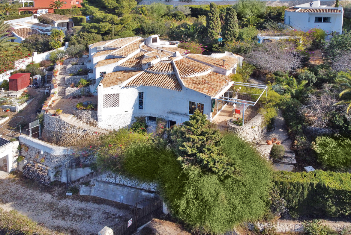 A la venta casa unifamiliar en la zona de Jávea (Marina Alta/Provincia de Alicante) en Portixol a 100 metros de altura con inmejorables vistas y muy cerca del mar. Diseñada por el prestigioso arquitecto Manuel de Jorge de estilo ibicenco y con mucho encanto.