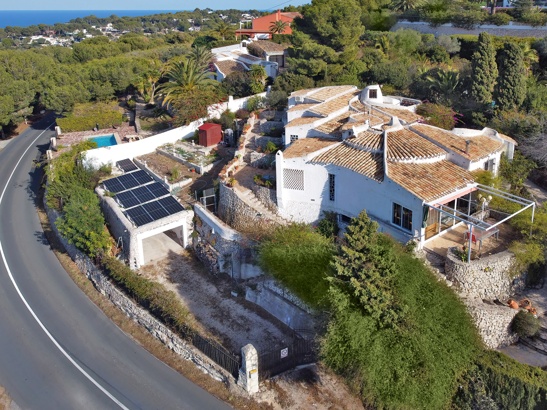 La casa principal tiene calefacción central con radiadores y a/c (frio/calor) marca Mitsubishi con la máxima eficiencia energética (AAA). La 2ª edificación tiene calefacción radiante y a/c (frio/calor). Las casas están orientadas al suroeste y norte. Tienen impresionantes vistas desde Cumbre del Sol hasta Cabo San Antonio (Puerto de Jávea). La parcela tiene acceso por 2 calles con Pérgola, Paellero, Garaje, Trastero.